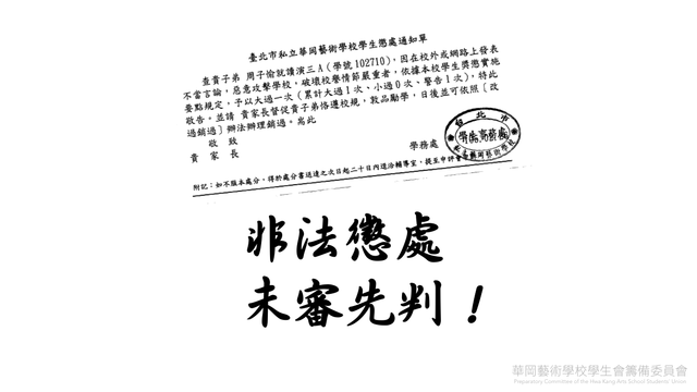 嚴正抗議華岡藝術學校學生會籌備委員會主席遭記「大過」一事